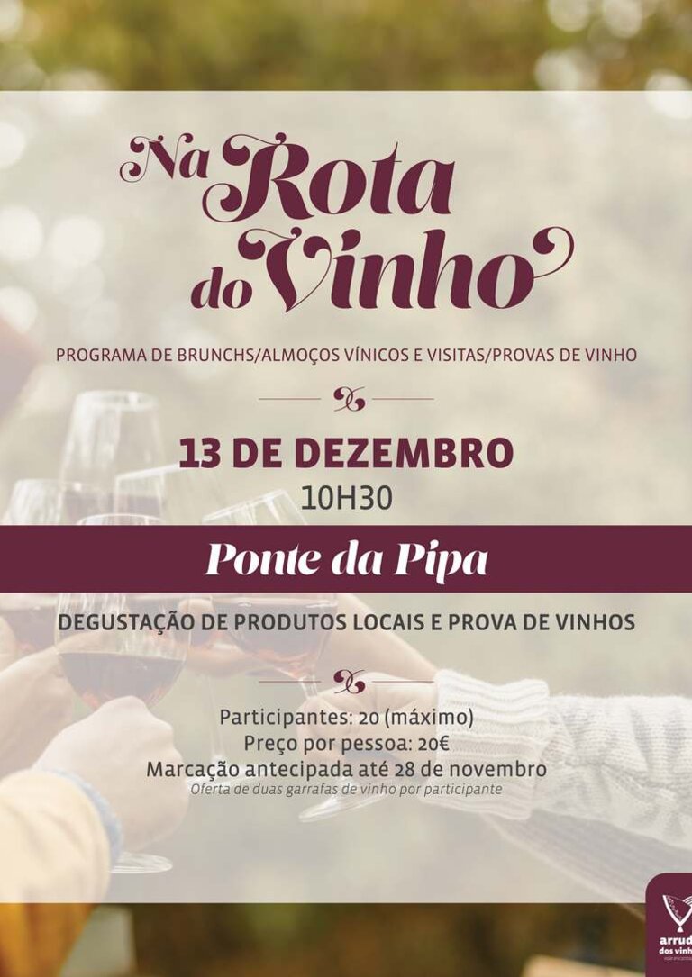 O programa de brunchs/almoços vínicos e visitas/provas de vinho em Arruda dos Vinhos é promovido pelo Município de Arruda dos Vinhos em parceria com os produtores de vinho locais.