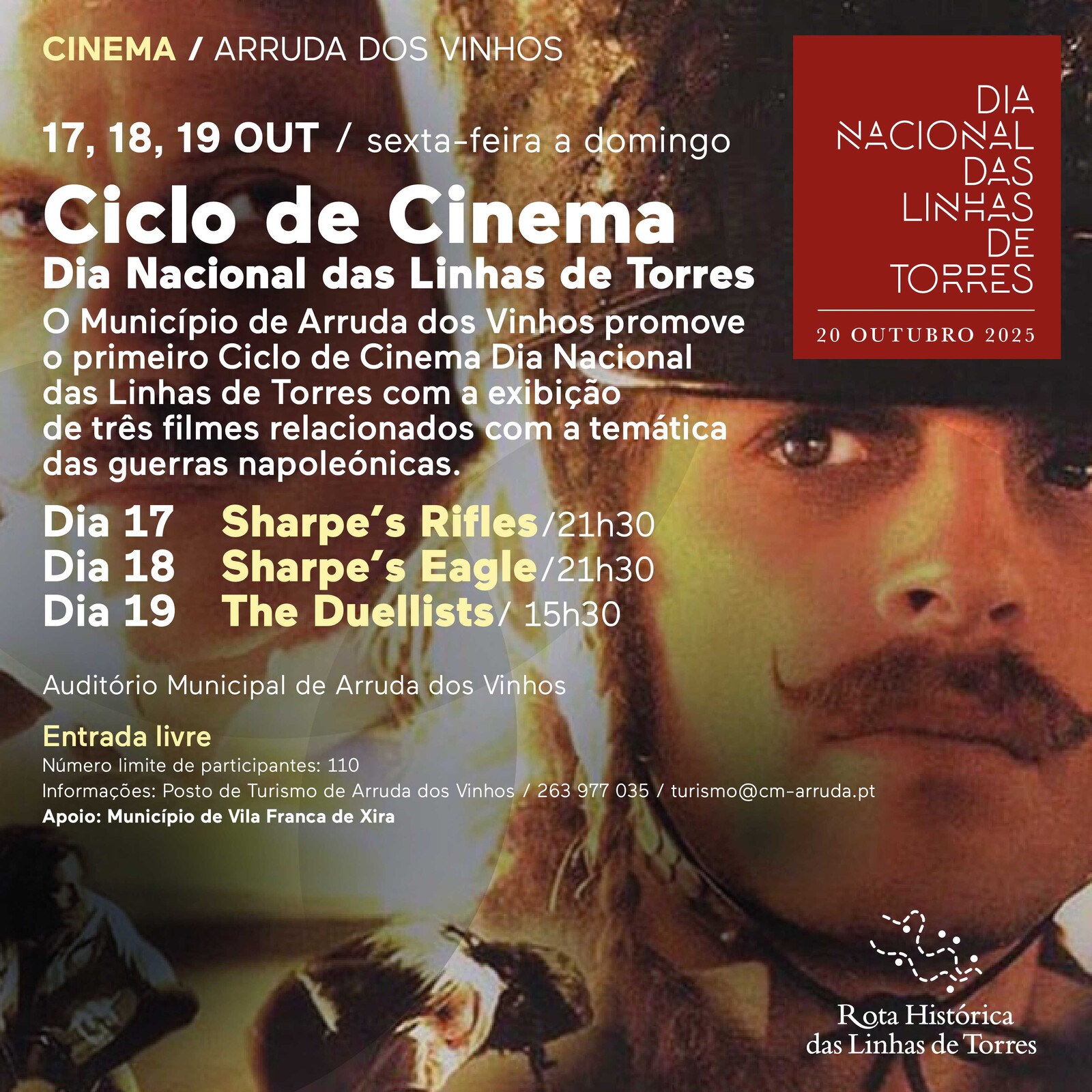 O Município de Arruda dos Vinhos promove o primeiro Ciclo de Cinema - Dia Nacional das Linhas de Torres com a exibição de três filmes relacionados com a temática das guerras napoleónicas.