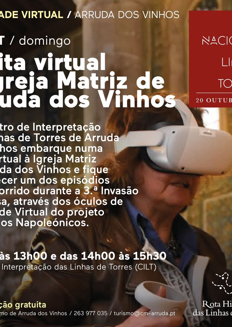 No Centro de Interpretação das Linhas de Torres de Arruda dos Vinhos embarque numa vista virtual à Igreja Matriz de Arruda dos Vinhos e fique a conhecer um dos episódios aqui ocorridos, durante a 3.ª Invasão Francesa, através de óculos de Realidade Virtual do projeto Itinerários Napoleónicos.