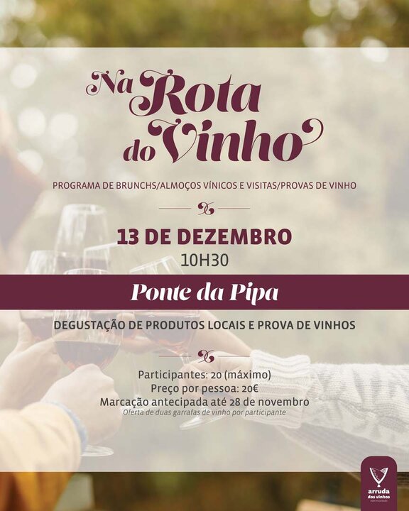 O programa de brunchs/almoços vínicos e visitas/provas de vinho em Arruda dos Vinhos é promovido pelo Município de Arruda dos Vinhos em parceria com os produtores de vinho locais.