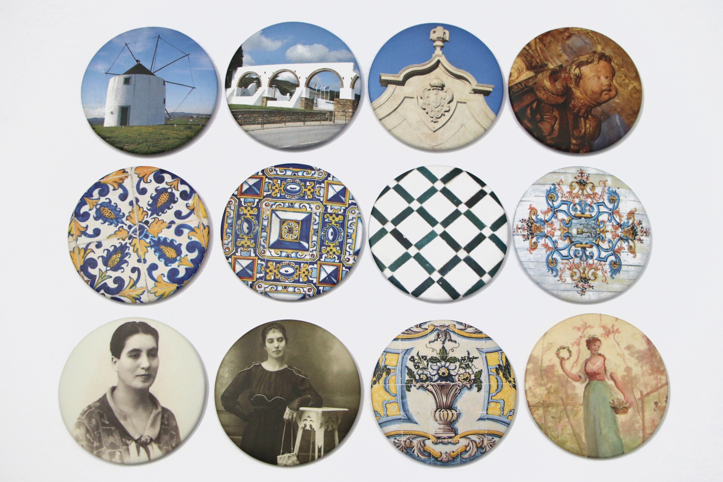 12 modelos disponíveis: 2 modelos de Irene Lisboa; Azulejos de padrão "Ponta de Diamante" da Igreja Matriz de Arruda dos Vinhos - Imóvel de Interesse Público; Pormenor de azulejos do Palácio do Morgado; Pormenor de pintura mural do Palácio do Morgado; Azulejos de padrão "Maçaroca" da Igreja Matriz de Arruda dos Vinhos - Imóvel de Interesse Público; Pormenor do altar-mor da Igreja Matriz de Arruda dos Vinhos - Imóvel de Interesse Público; Pormenor dos azulejos da Igreja Paroquial de Cardosas; Pormenor do teto de madeira policromado da Igreja Paroquial de Arranhó; Pormenor do Chafariz Pombalino de Arruda dos Vinhos - Imóvel de Interesse Público; Moinhos de S. Tiago dos Velhos e Vista do Aqueduto de Arruda dos Vinhos